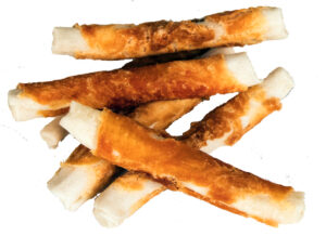 Glutenfri och med läcker och smakrik kycklingwrap omkring lättuggat tuggben som håller hunden sysselsatt en stund. Ca 12,5 cm långa.