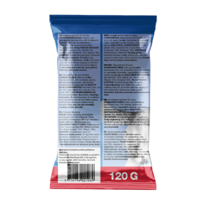 | Yksikkö 120 grammaa | Mitat (KxLxS) 20x11x2 cm | Kolli 14 x yksikköä | 1/2 lava 112 x kollia | Lava 224 x kollia |
